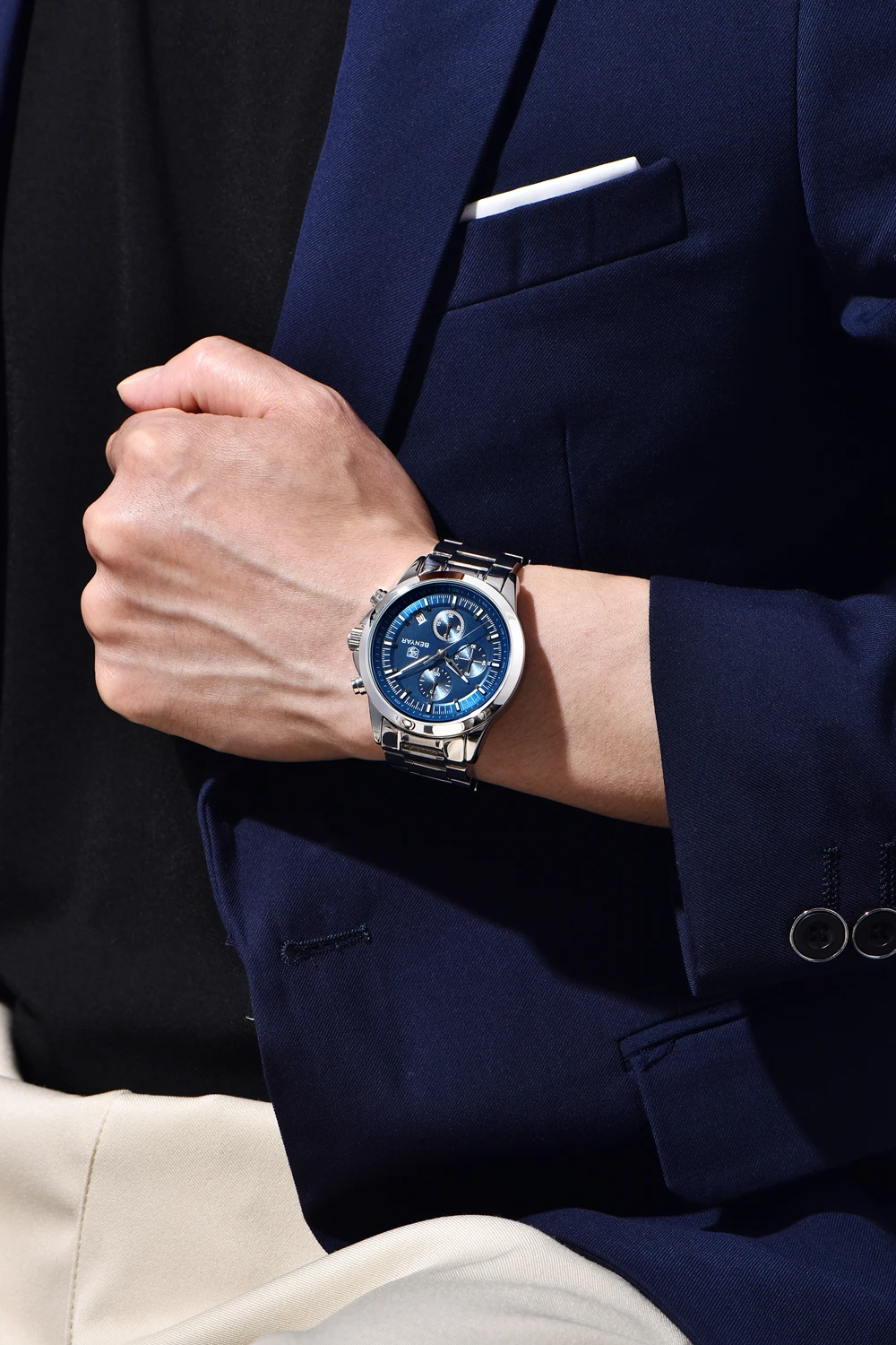 Feature: Stop Watch,Shock Resistant,Luminous,Chronograph,Complete Calendar,Luminous Hands