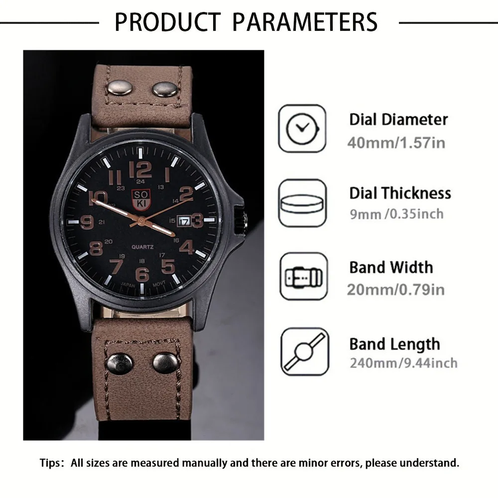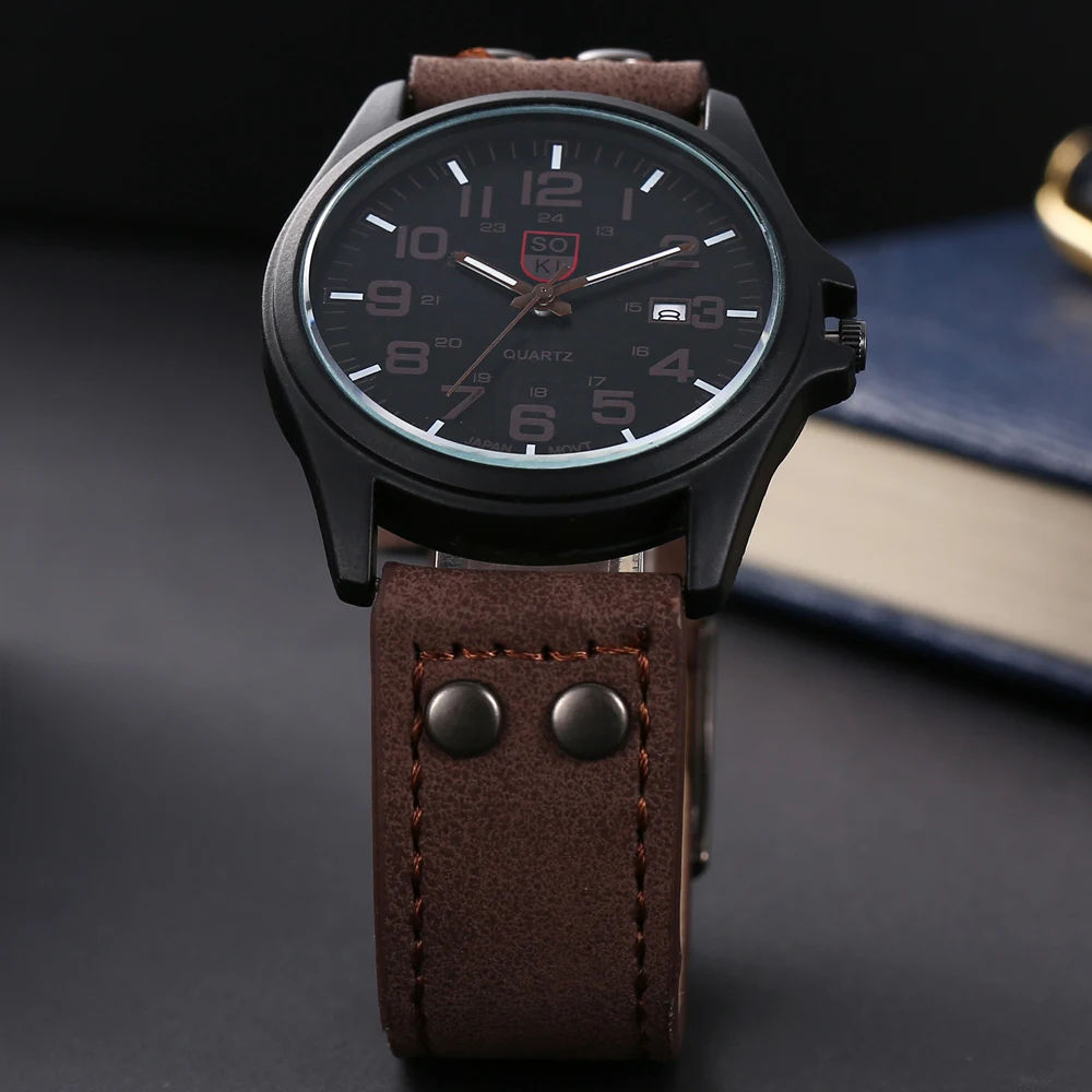 SOKI Brand Watches Men Sports Casual Wristwatch QuartzLeather Strap Watches Masculino Relogio Fashion Male Calendar Clock Out-door Reloj Hombre Best Gift for Boys Students Male BoyfriendsWatches categories:Men,male